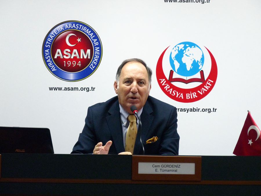 KONU : ” TÜRKİYE’NİN DENİZ JEOPOLİTİĞİ” KONUŞMACIMIZ : CEM GÜRDENİZ, E. TÜMAMİRAL OTURUM BAŞKANI: MEHMET SEYİT TÜRKER, AVRASYA BİR VAKFI MÜTEVELLİ HEYET ÜYES